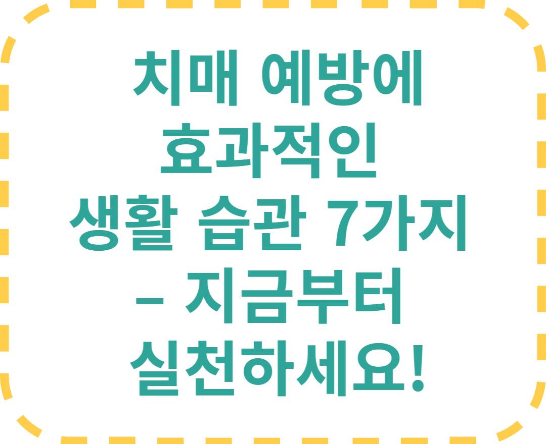 치매는 예방이 가능합니다. 위에서 소개한 7가지 생활 습관을 조금씩 실천하면서, 가족과 함께 건강한 노후를 준비해보세요.