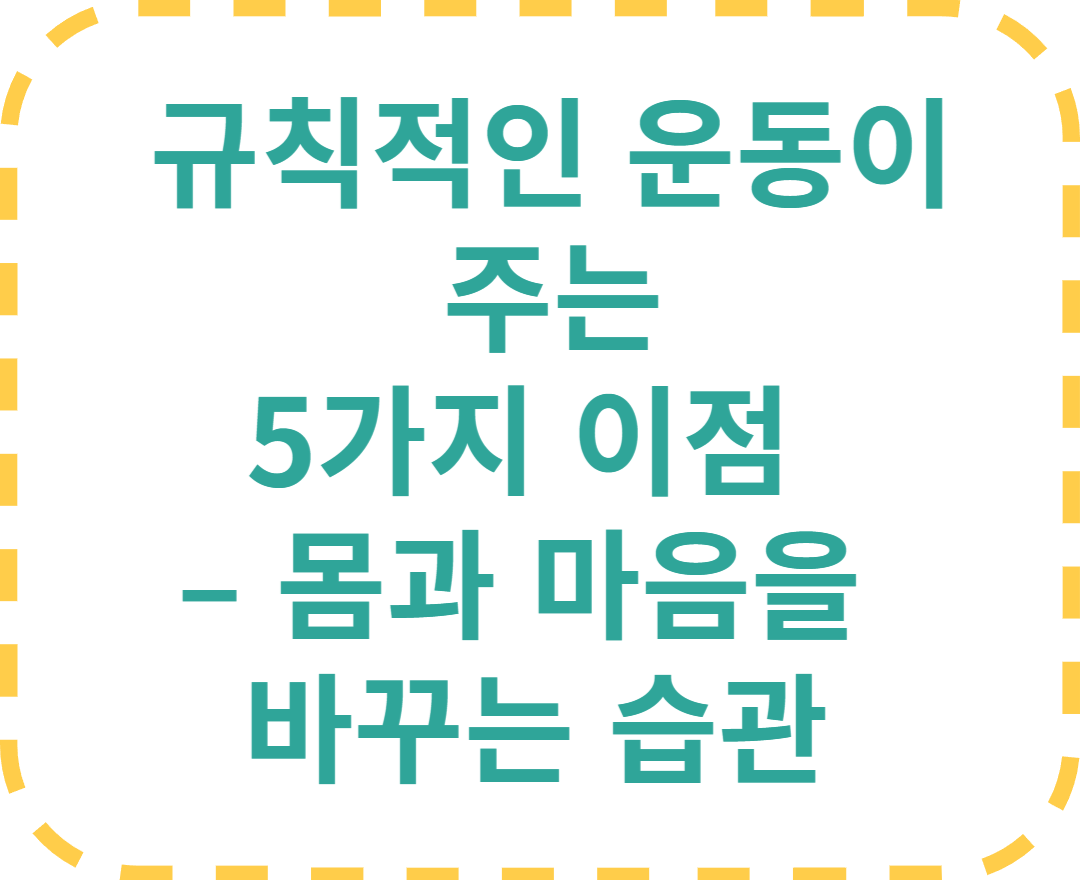 규칙적인 운동은 나를 위한 최고의 투자입니다. 체력, 정신, 면역, 집중력 등 다양한 효과를 주는 운동을 오늘부터 실천해보세요. 지금 이 글을 읽고 있는 이 순간, 가볍게 어깨를 돌리는 것부터 시작해도 충분합니다. 작은 습관이 모여 큰 건강을 만든다는 걸 기억하세요!