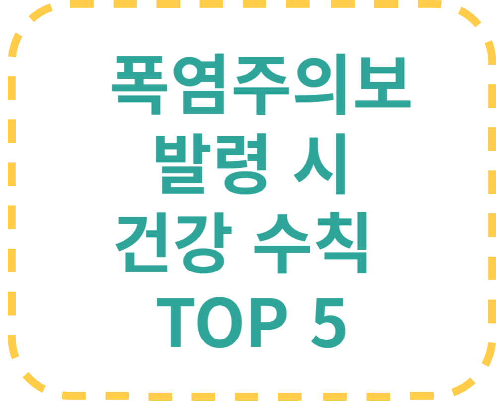 아래는 폭염 시 꼭 실천해야 할 건강 수칙 TOP 5입니다. 가족과 이웃과도 함께 나누어야 할 정보입니다.