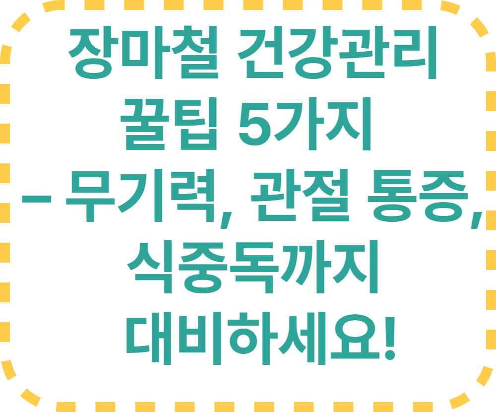 장마철에는 작은 습관 변화가 건강에 큰 차이를 만듭니다. 오늘부터 하나씩 실천하셔서, 무더운 여름도 건강하게 보내세요! 😊