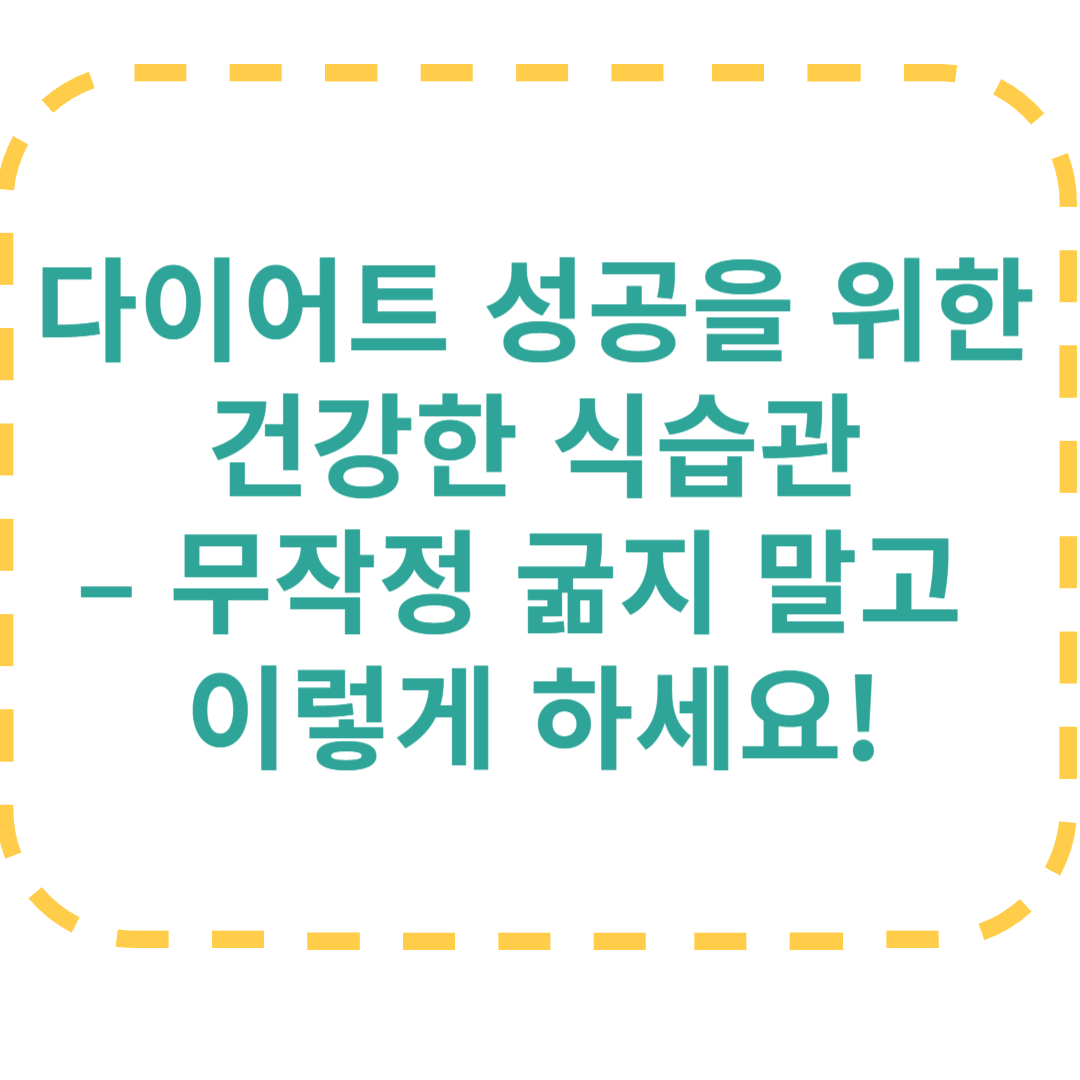 🚀 **무작정 굶지 않아도 건강한 식습관을 유지하면 자연스럽게 체중이 조절됩니다!** **오늘부터 하나씩 실천하면서 건강하고 균형 잡힌 다이어트를 시작해 보세요.** 😊
